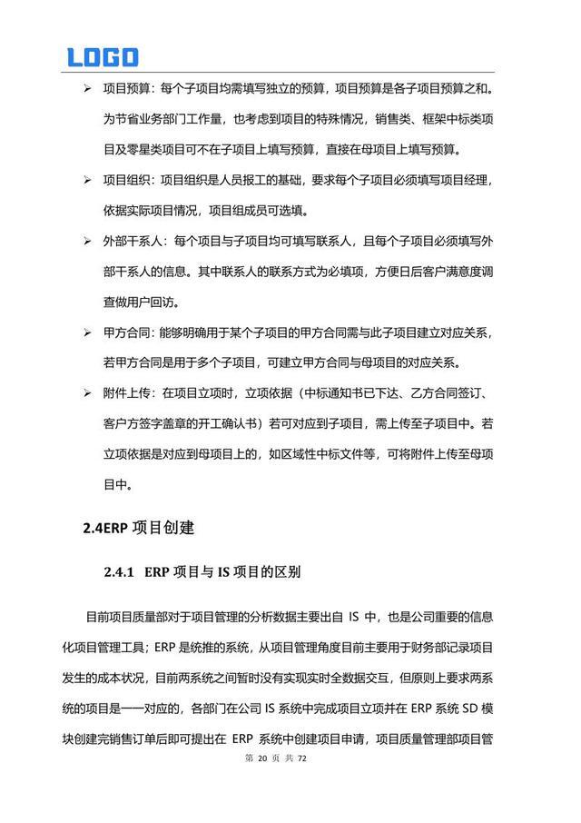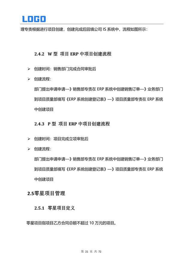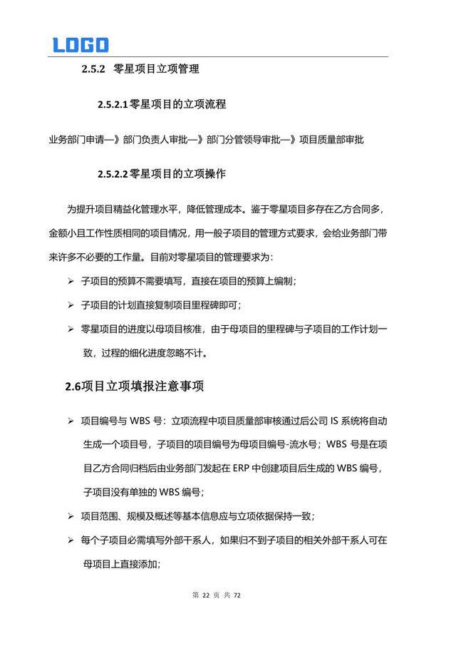 项目立项管理 2.1 项目定义 2.2 立项要求 2.3 子项目管理 2.4 ERP 项目创建 2.5 零星项目管理 2.6 立项填报注意事项