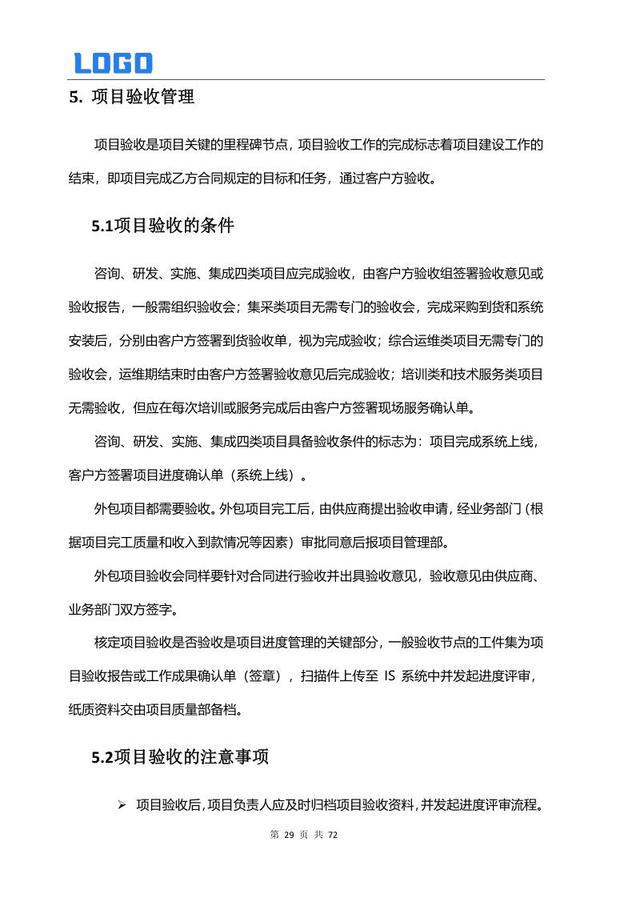项目验收管理 5.1 验收条件 5.2 验收注意事项