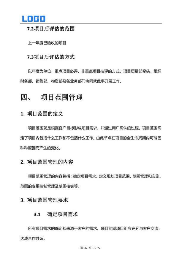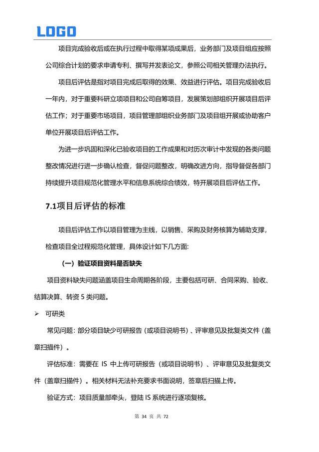 项目后期管理 7.1 后评估标准 7.2 后评估范围 7.3 后评估方式