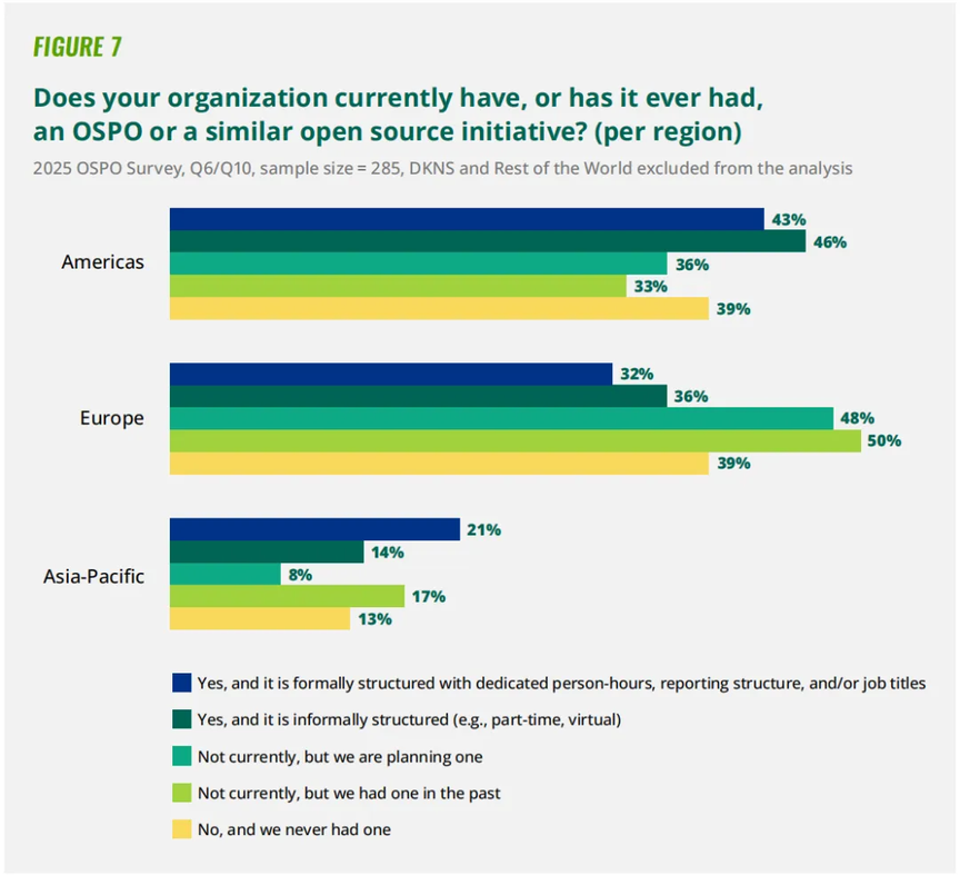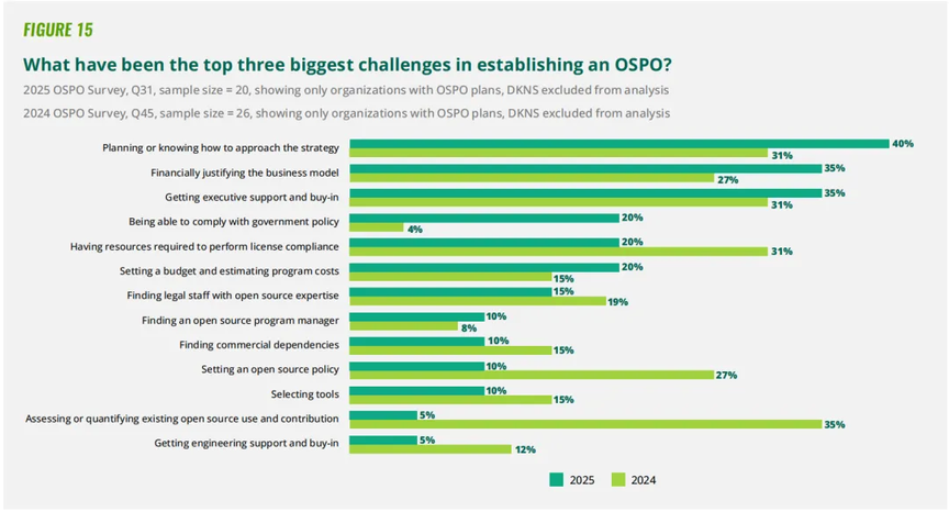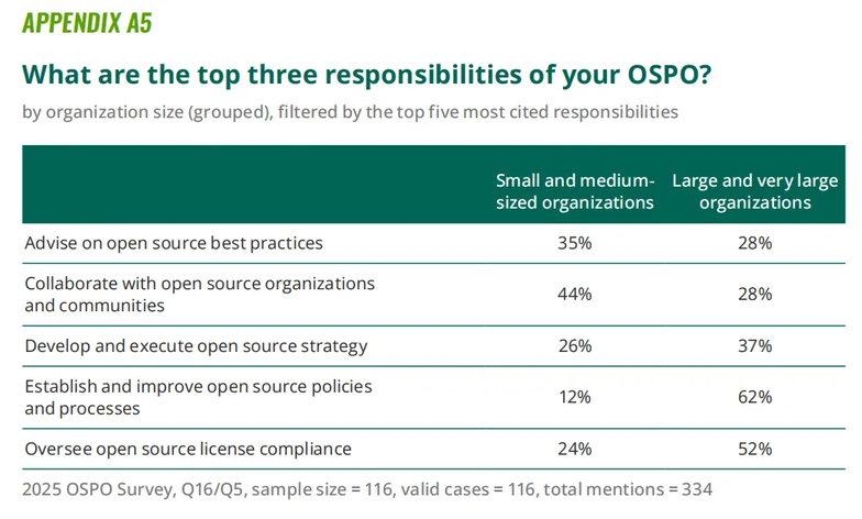 声明:本文涉及的数字及图片均来源于《THE 2025 STATE OF OSPOs AND OPEN SOURCE MANAGEMENT》一文。