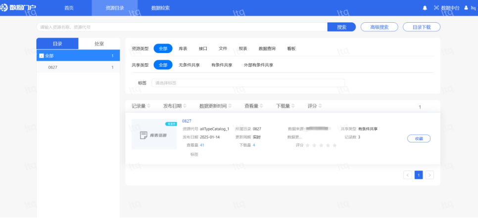 进入目录页可以看到资源详情列表,左侧是目录,右侧是检索。资源检索条目丰富,可按用户的关注点自选维度检索,比如:每条资源可按标签、时间、部门、分类等检索。