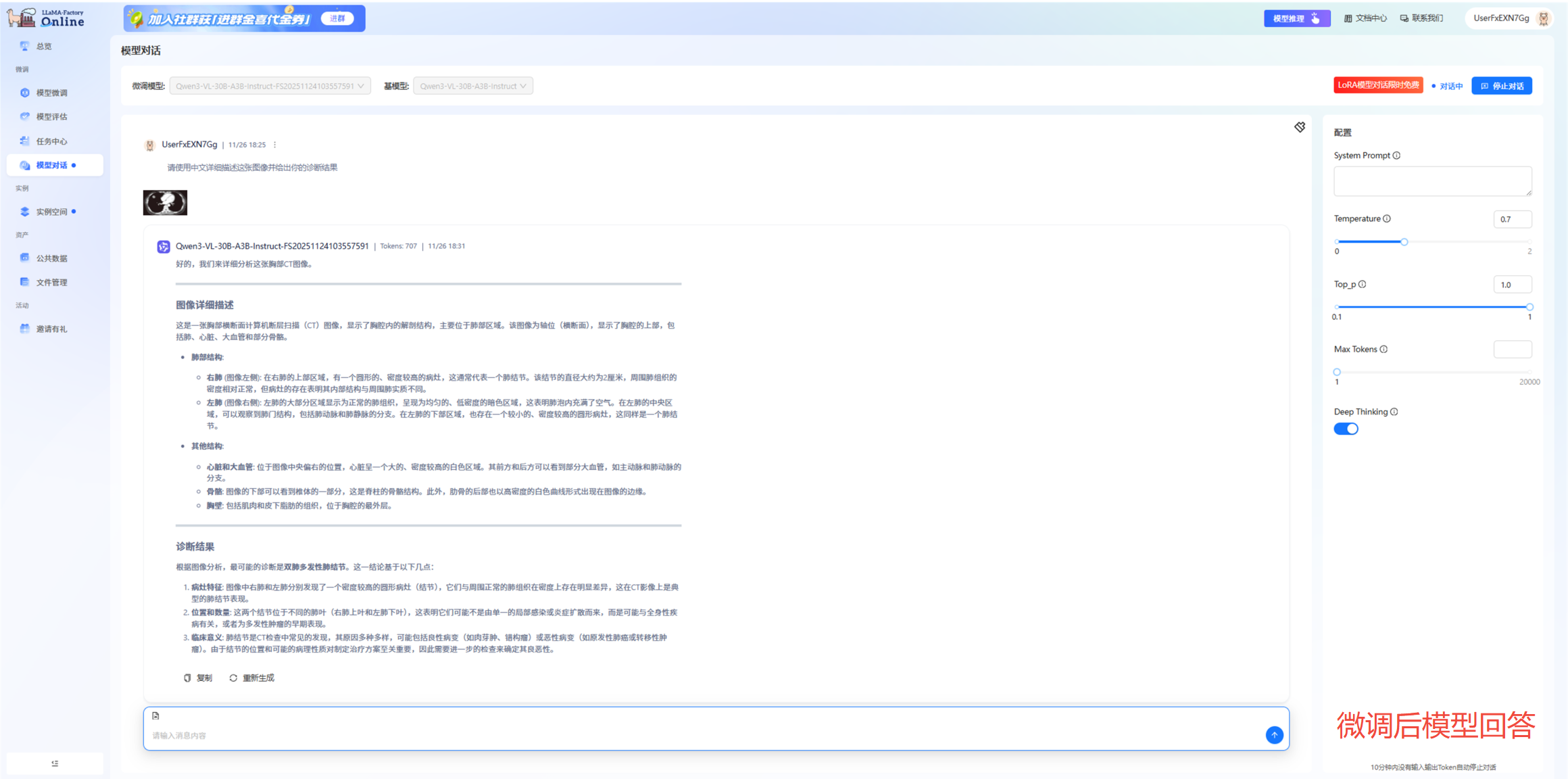 今天,我们将完整揭秘:如何基于LLaMA-Factory Online,仅用 1.6 万条数据,在 Qwen3-VL-30B-A3B 模型上,训练出一个真正的“医疗影像专家”。我们不仅会讲“怎么练”,更会用实测数据告诉你“怎么用”——单张 RTX 4090 就能部署!