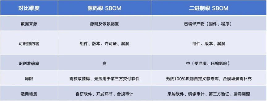 图 4:源码级与二进制级 SBOM 对比
