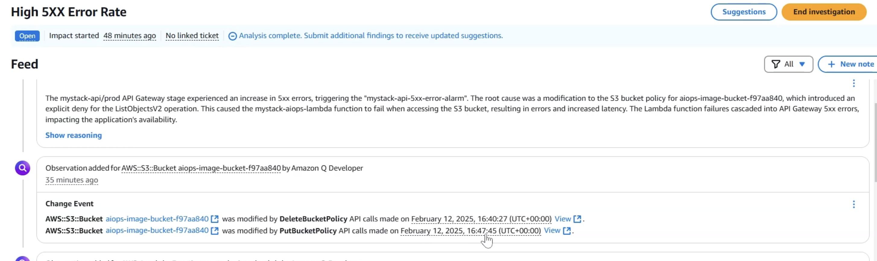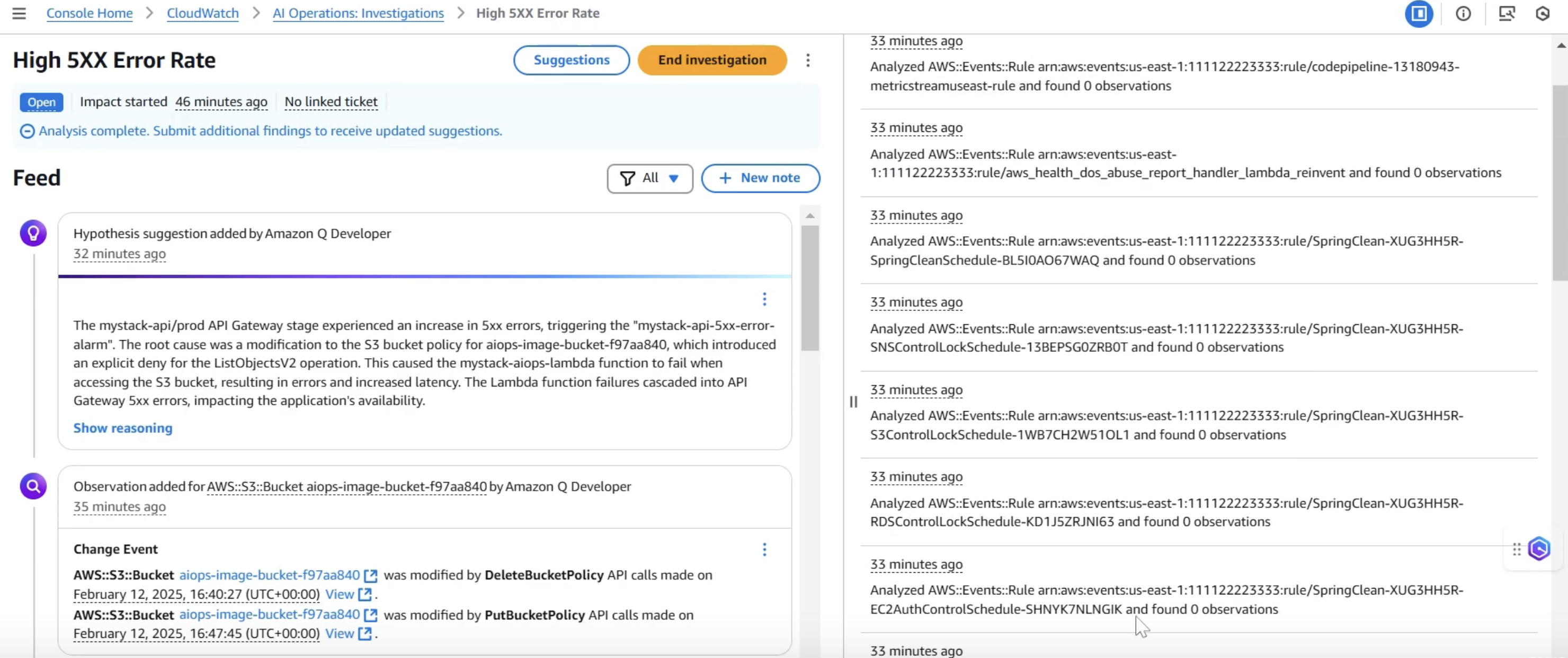 这个演示展示了 CloudWatch AIOps 如何快速识别配置变更导致的问题,并提供明确的修复建议,大大减少了故障排查时间。
