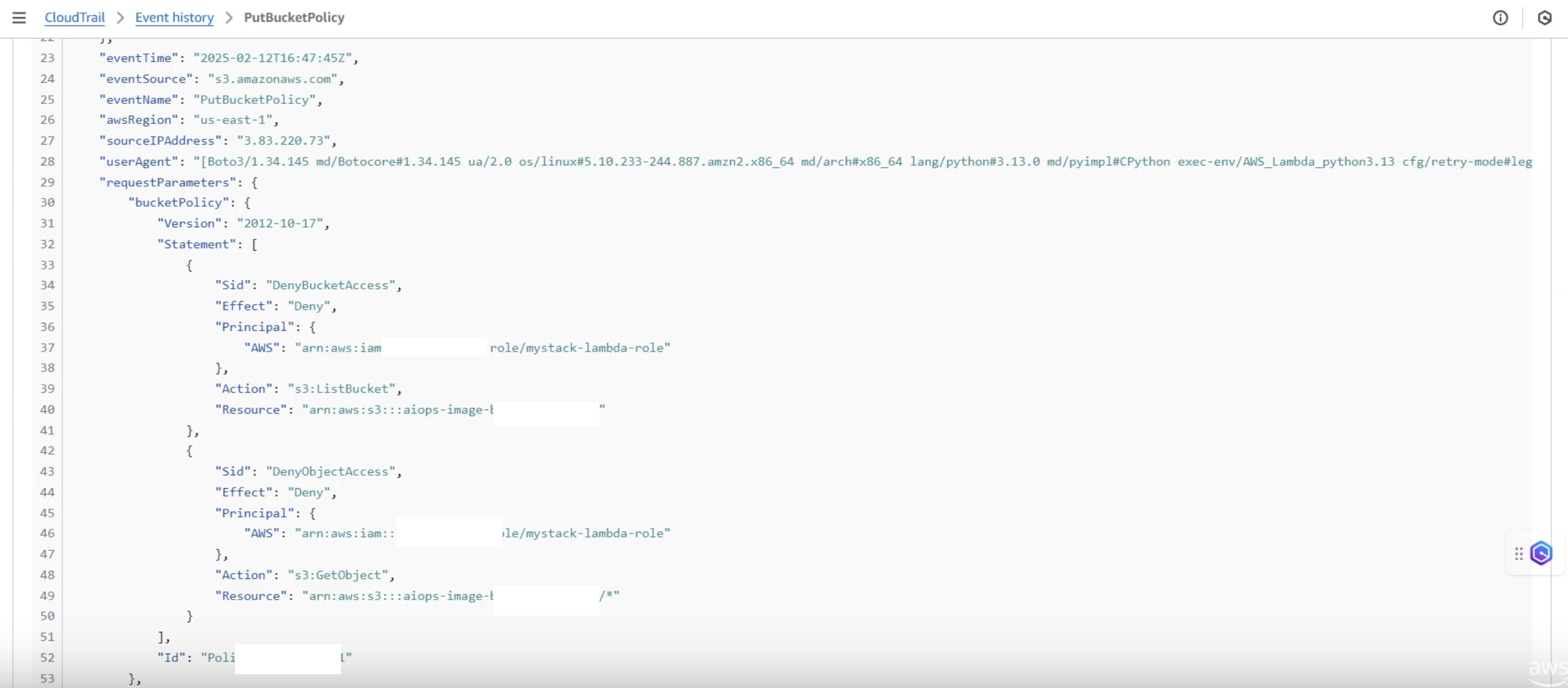 相关证据:CloudTrail 日志显示的 S3 策略变更事件