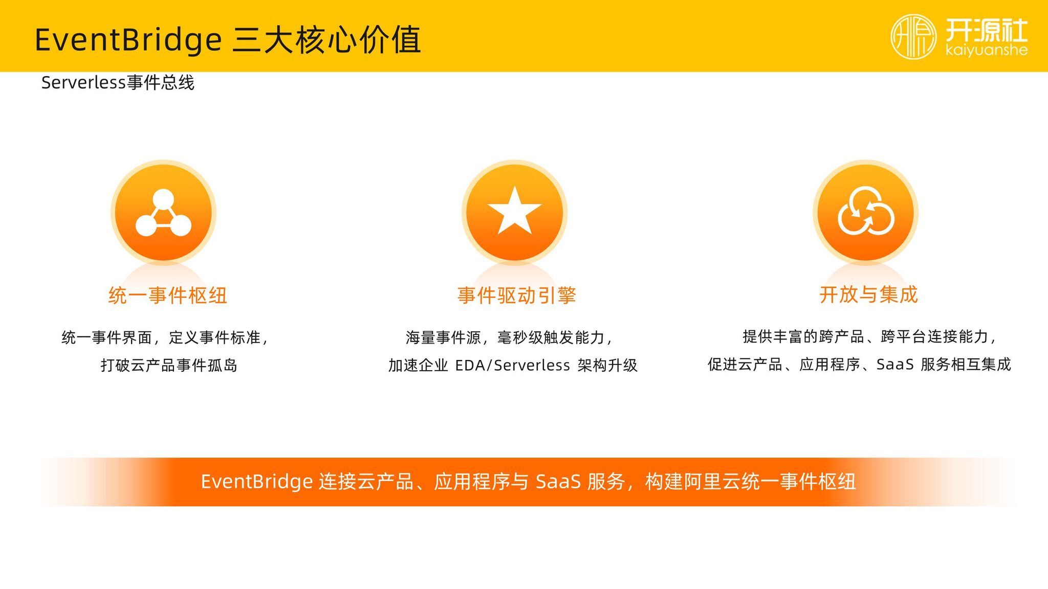 因此,我们对 EventBridge 做了定义,它有几个核心价值:**