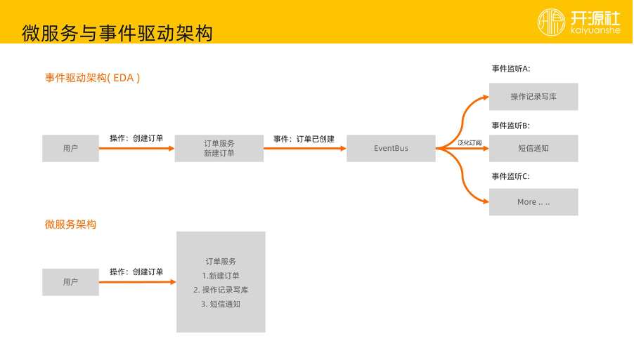 接下来,微服务架构跟 EDA 架构有什么区别?
