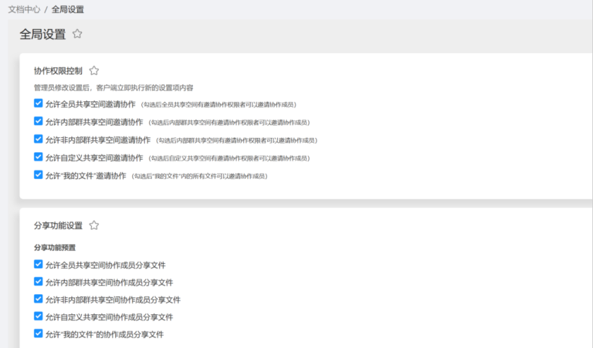 进入组织管理后台,开启文档协作功能,为后续的权限设置打下基础。