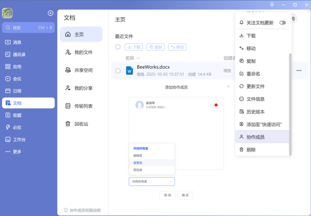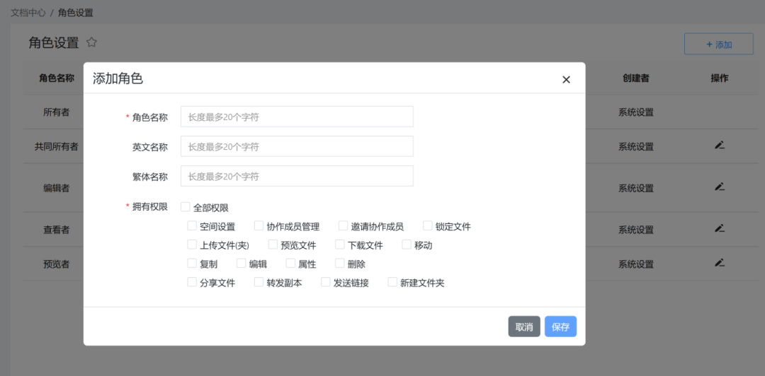 根据职责为成员分配不同角色,并设置对应的文档操作权限。例如:
