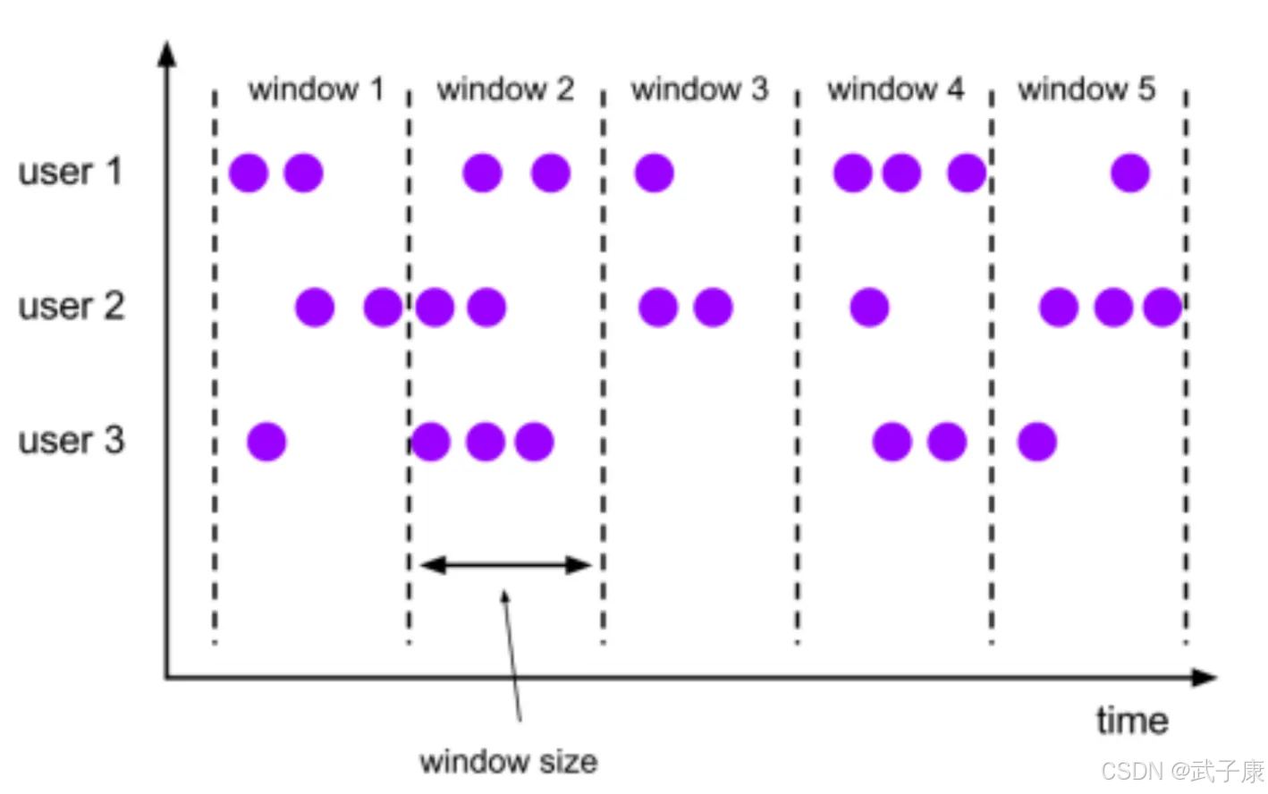 当然我们可以每来一个消息就处理一次,但是有时候我们需要做一些聚合操作,例如:在过去一分钟内有多少用户点击了我们的网页