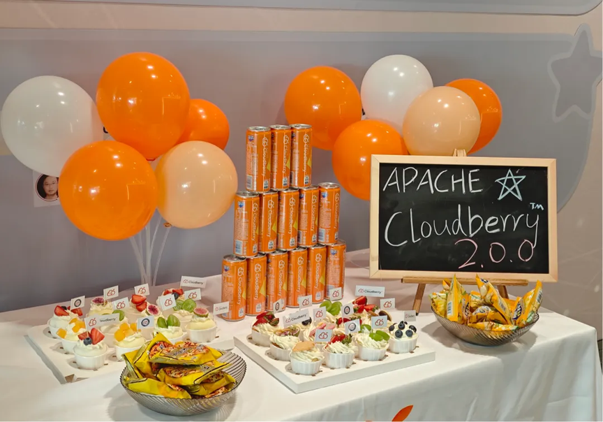 (Apache Cloudberry 2.0 发布茶歇区:主题饮品、精美点心与庆祝布置,共同迎接 2.0 里程碑版本发布)