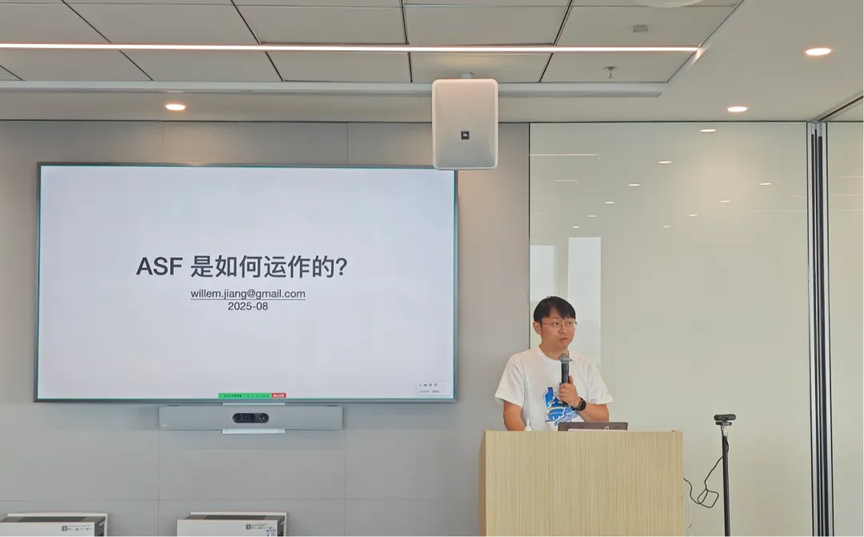 活动还邀请 Apache 软件基金会前董事、Apache 会员姜宁深入介绍了 Apache 软件基金会的独特运作模式。ASF 的治理被比喻为“双轨制”:一方面,PMC 负责项目的技术决策与版本发布;另一方面,ASF 董事会则通过选举产生,负责基金会整体方向与合规监督。这种分权设计保证了项目的自治与组织的中立。
