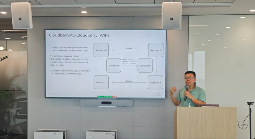 活动伊始,酷克数据研发 VP、Apache Cloudberry PPMC 成员杨瑜对 Apache Cloudberry 2.0 全新版本进行了系统分享。Cloudberry 最早项目立项于 2022 年,并在 2023 年 6 月以 Apache 2.0 协议完全开源。2024 年 10 月,它正式进入 Apache 孵化器。如今,其 GitHub Star 已突破一千,而 2.0 版本作为进入 Apache 孵化后的首个重要里程碑,已进入发布候选阶段(RC3)。这一发展路径既是对闭源风险的应对,也彰显了通过开源社区实现可持续发展的战略选择。