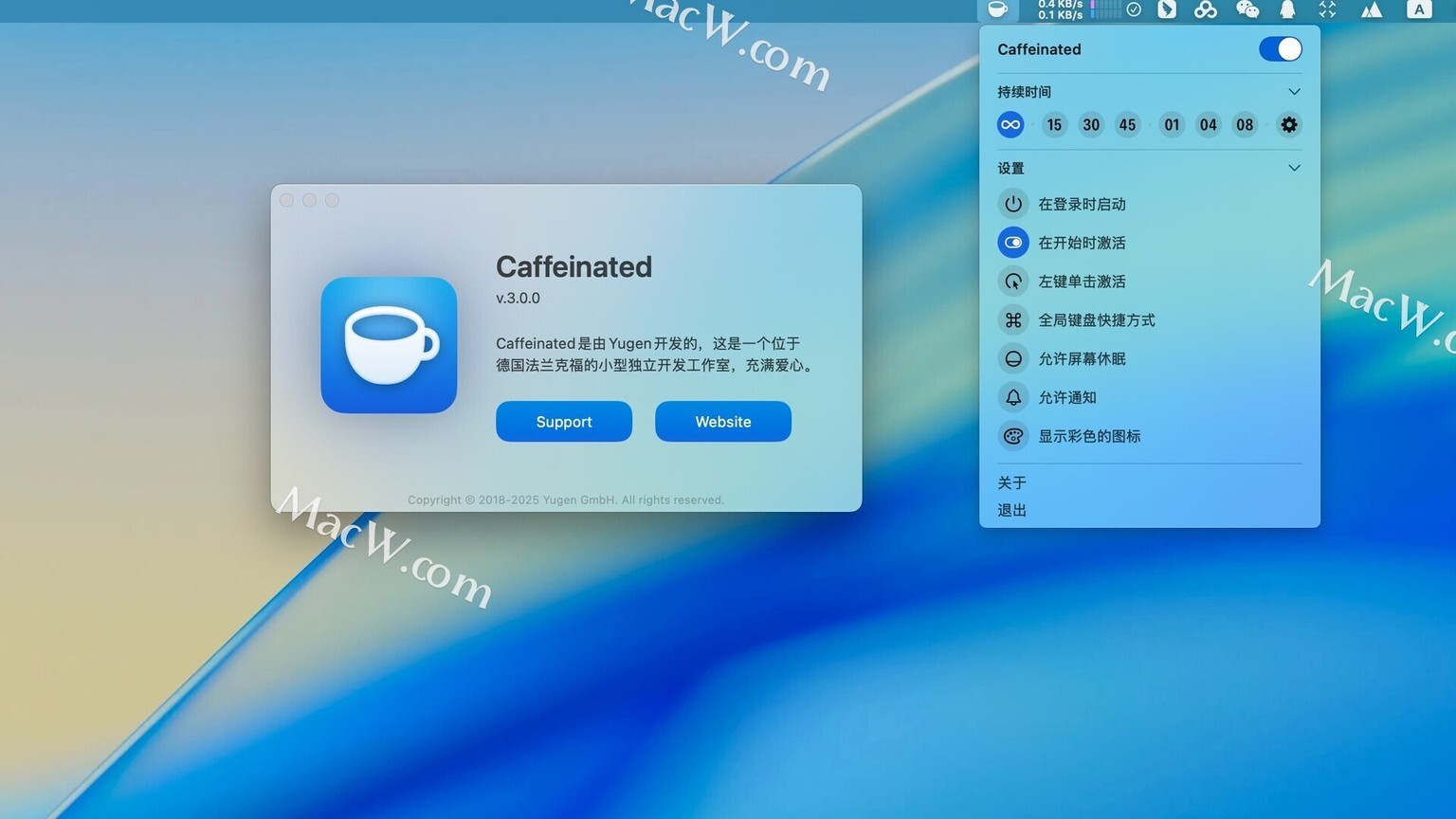 首先,Caffeinated 提供了一键激活功能,用户可以选择使用左键单击或右键单击来快速启动或关闭防休眠功能,操作简单方便。