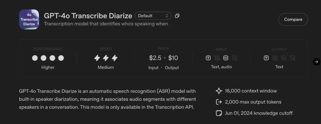 向大家介绍一个小型音频模型——gpt-4o-transcribe-diarize。