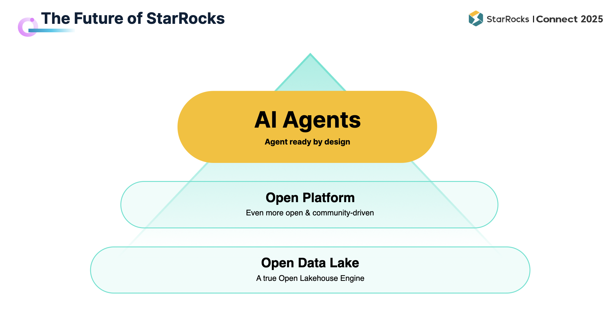 面向未来,StarRocks 正在积极探索如何更好地服务 AI Agent,将数据分析能力与 Agent 场景高效衔接。随着各行各业不断加速 AI 赋能,StarRocks 立足于数据系统的核心优势,持续拓展并构建面向 AI 的新能力,以满足用户在智能化转型中的迫切需求。