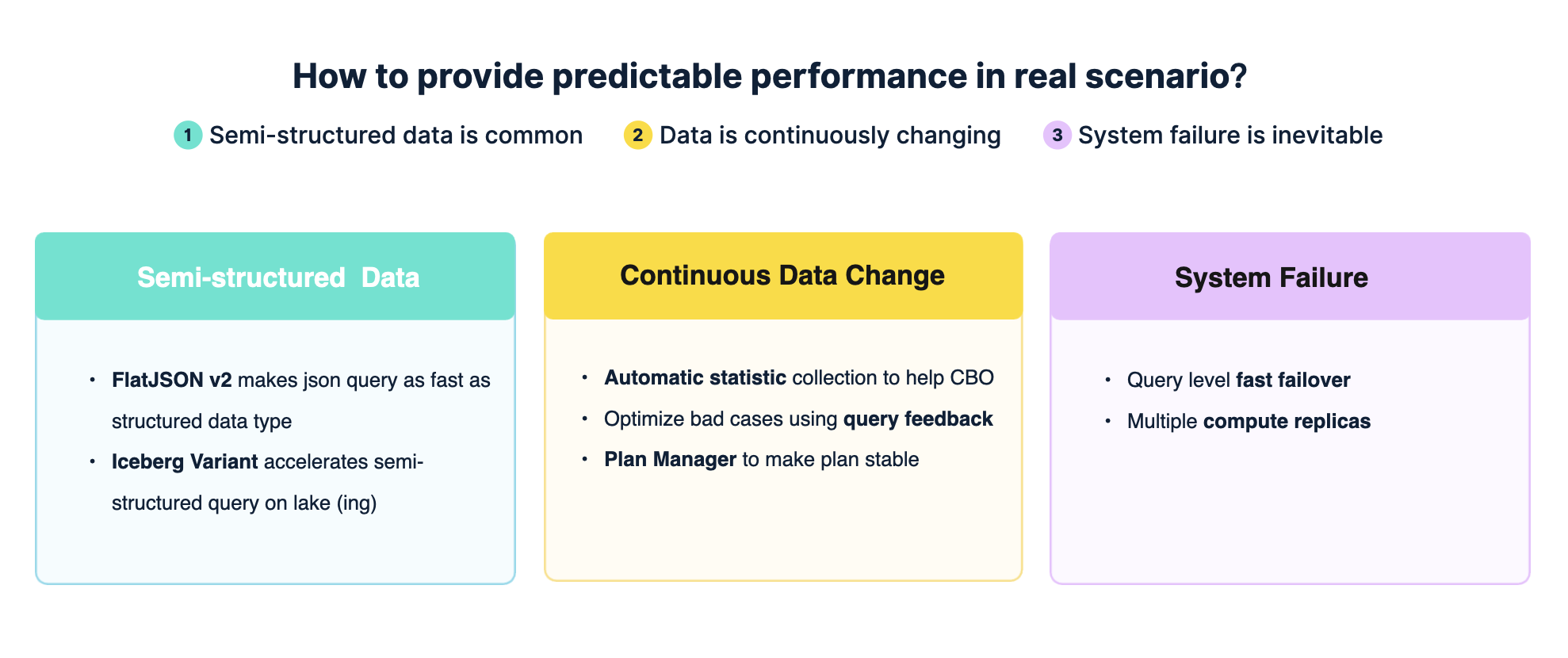 在真实场景下,StarRocks 面临的挑战与 Benchmark 存在显著差异: