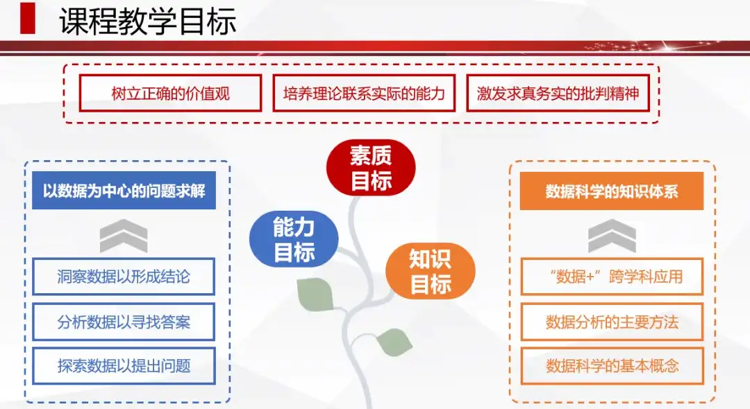 数据科学或人工智能领域目前备受关注,但各方理解常存在差异,犹如“盲人摸象”。在教育范畴内,虽可包容多元理解,但我们仍需提炼其核心素养予以传授,这是首要矛盾。
