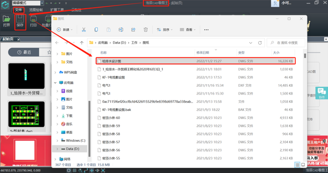 5、清理完成后要对清理后的图纸进行保存,保存后我们再来看【给排水设计图】这张图纸的大小就只有 16M 了,图纸大小缩小了,冗余文件没有了,开图查看自然就顺畅了。