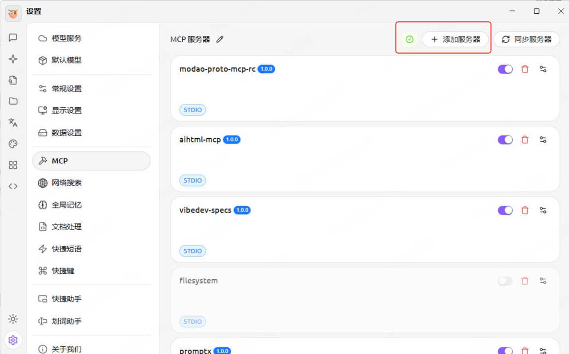 ② 在 Cherry Studio 添加 MCP 服务器