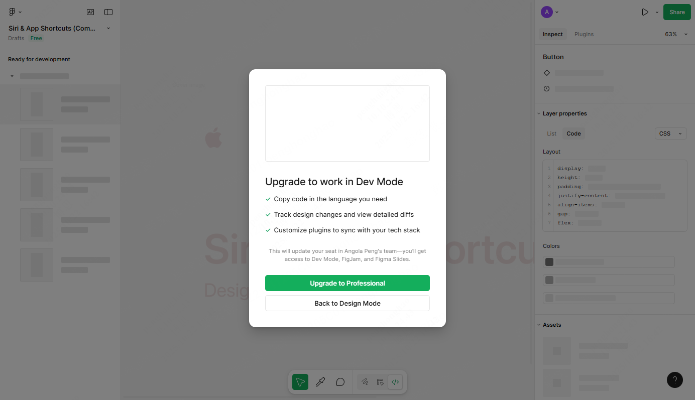 切换到研发模式:创建或打开一个 Figma 设计文件,在底部工具栏中,切换到研发模式(快捷键 Shift+D)。值得一提的是,Figma 研发模式仅限订阅用户使用,因此如果你使用的是免弗版,可考虑使用三方的插件 Cursor Talk To Figma MCP Plugin。