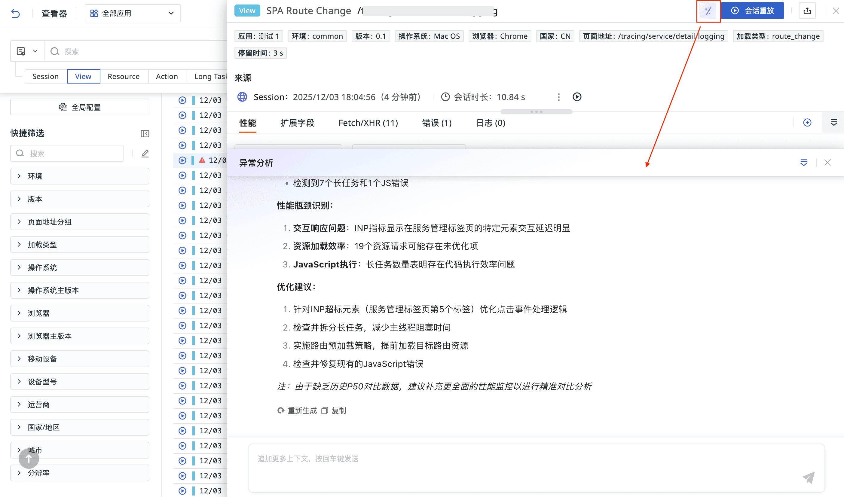 2、View 查看器页面支持 Obsy AI 错误分析。