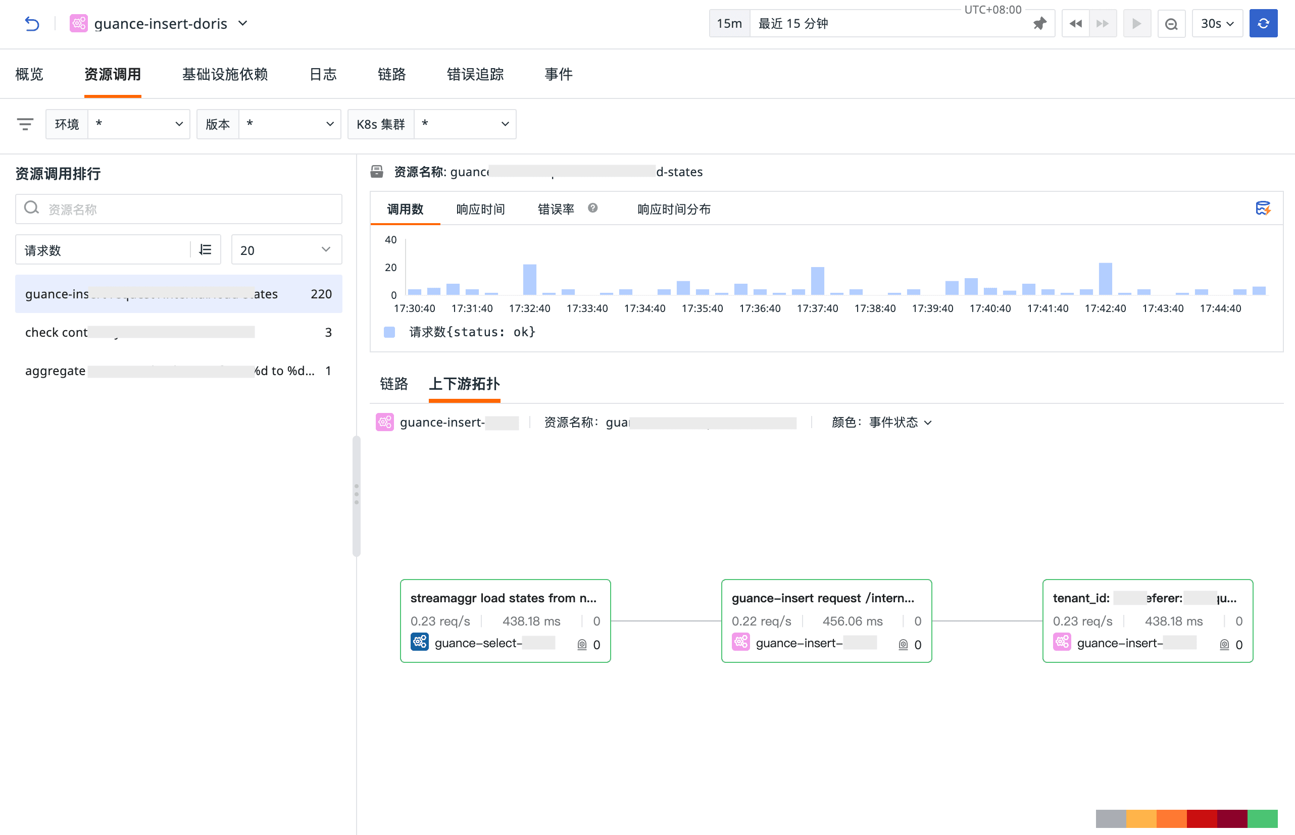上下游拓扑:新增“查看上游/下游调用”按钮,支持基于当前拓扑继续查看上/下层级的调用关系,实现从当前资源出发的全链路路径分析。