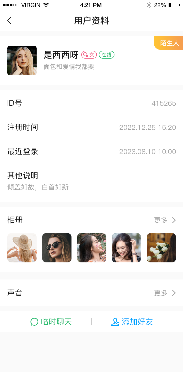 展示好友头像、昵称,点击好友进入好友基本信息页面