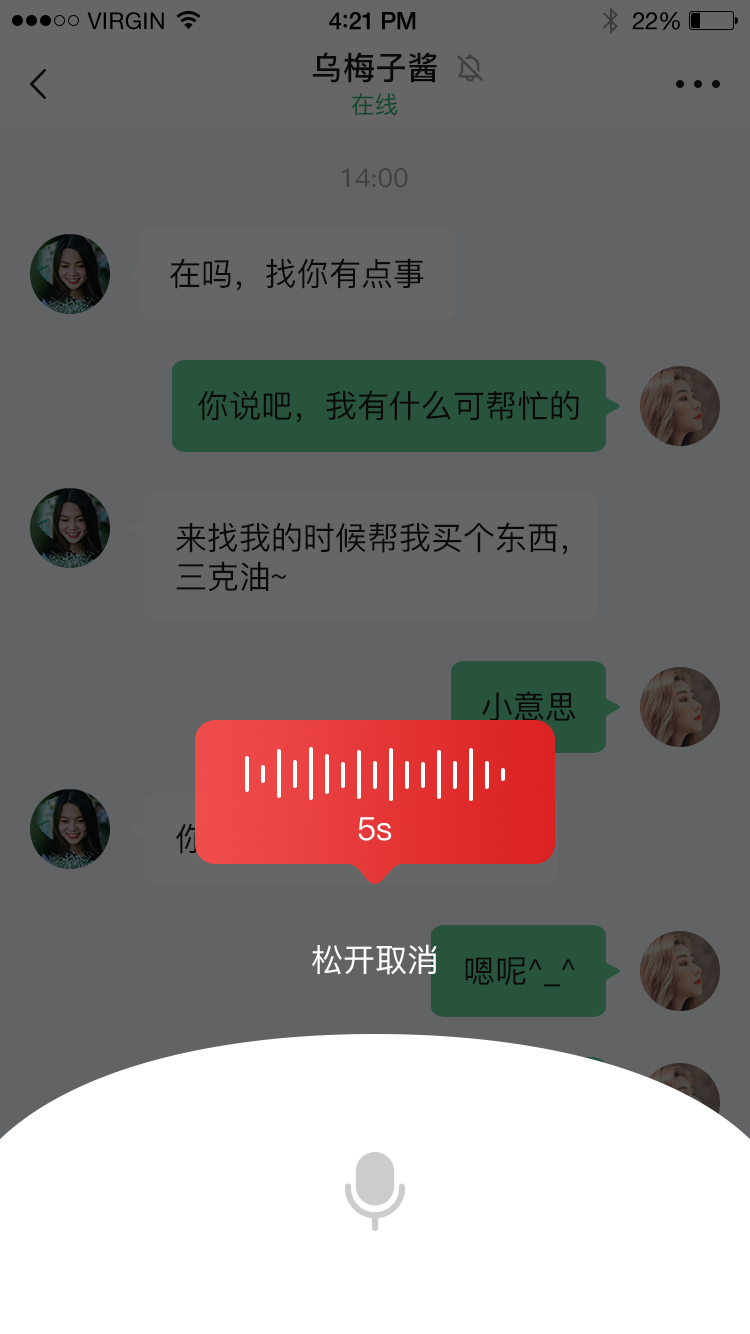 4.聊天内容展示:可展示文字、图片、语音条、表情、文件等内容