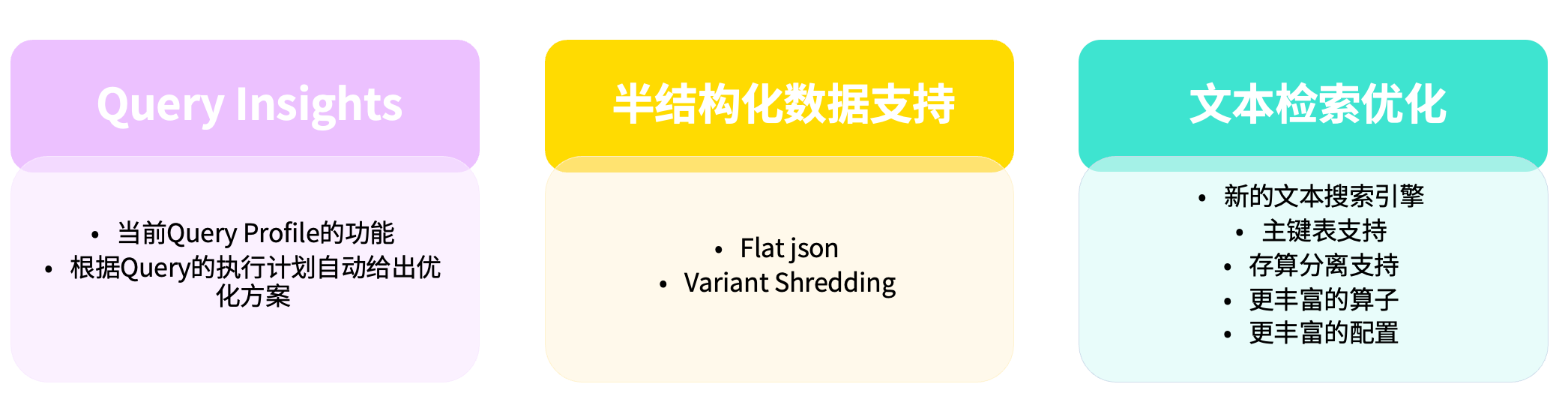 这一过程将在后续版本的 Feature 中持续完善。目前针对筛选字段的选取策略仍在优化中。根据与 Snowflake 团队的沟通,他们采用的方案相对直接——选择查询频率最高的前 10 个字段作为 Shredding 对象。