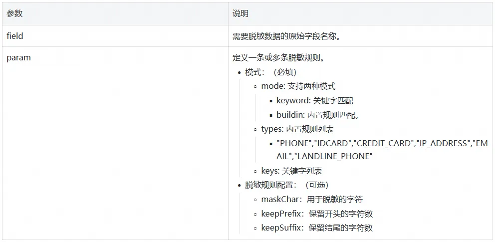 处理插件模式:通过配置数据脱敏插件,基于正则匹配完成敏感字段的精准替换