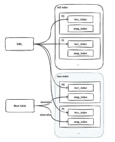 第二步,创建 3 号表 deltabufftable 和 4 号表 indexidtable。在该创建过程中,不需要进行数据补全,因为后续创建 5 号表 indexsnapshotdata_table 时,会将数据统一导入到 5 号表中,因此 3 号表和 4 号表不需要再进行补全数据操作。3 号表创建完成后,即可开始写入外部 DML 操作的增量数据。