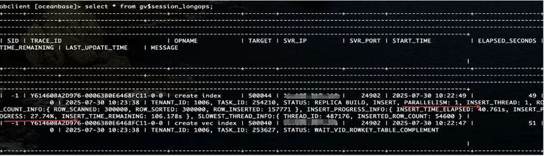 GV$SESSION_LONGOPS 视图用于展示集群 DDL 操作的执行状态和进度,从该视图中可以得出构建过程的各个状态。