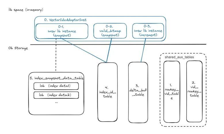 1 ~ 2 号表,因为和主表主键都有关系,所以是共享辅助表,由一张表上的所有向量索引共用。