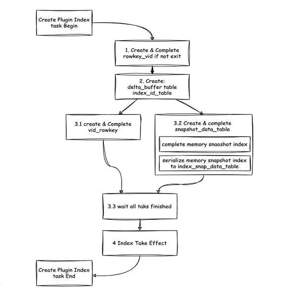第三步,创建 2 号表 vidrowkeytable 和 5 号表 indexsnapshotdata_table。创建 2 号表的过程和创建 1 号表过程类似,需要先创建 Schema、再补全数据。创建 5 号表的过程和上述流程都不太一样,需要同时创建内存索引和磁盘索引,会先将数据添加到内存增量索引中,数据补齐后,再将内存索引中的数据反序列化到 5 号表中,共包含了两个步骤。