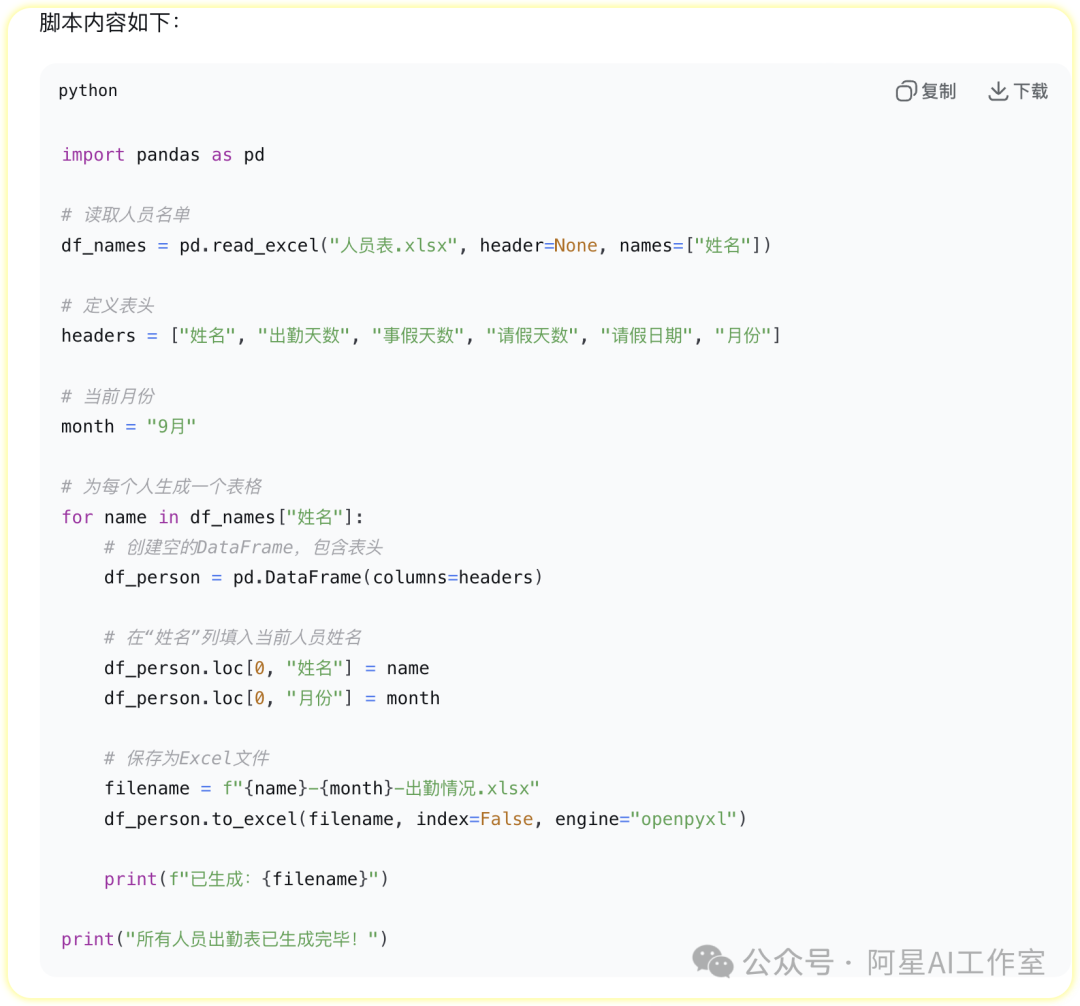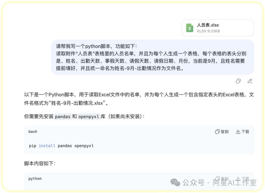 告别重复劳动!用 AI 一键为全员生成考勤表格丨 excel 提效