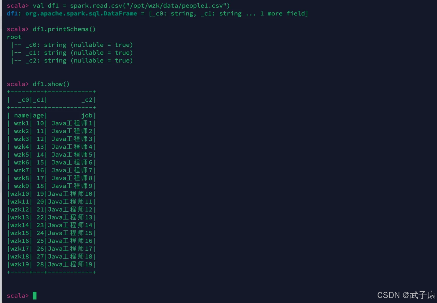 DataFrame = RDD[Row] + Schema 继续进行测试: