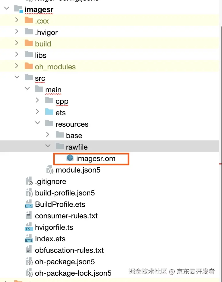 为了让 App 运行时能够读取到模型文件和处理推理结果,需要先把离线模型和模型对应的结果标签文件预置到工程的“entry/src/main/resources/rawfile”目录中。