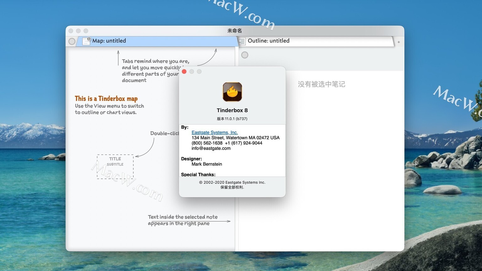 Tinderbox for Mac 是一款强大的知识管理和思维导图工具,旨在帮助用户组织、分析和可视化复杂的信息和想法。