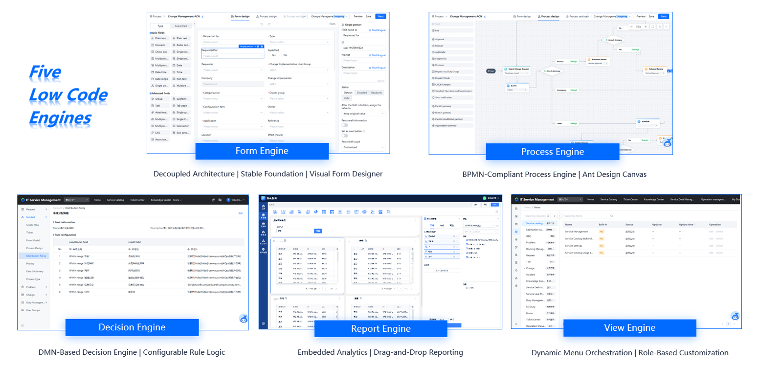 低代码能力 &可视化报表:依托低代码流程引擎,能快速搭建、调整业务流程,支持表单设计与脚本编辑;配套报表开发,覆盖 ServiceNow 核心服务场景。