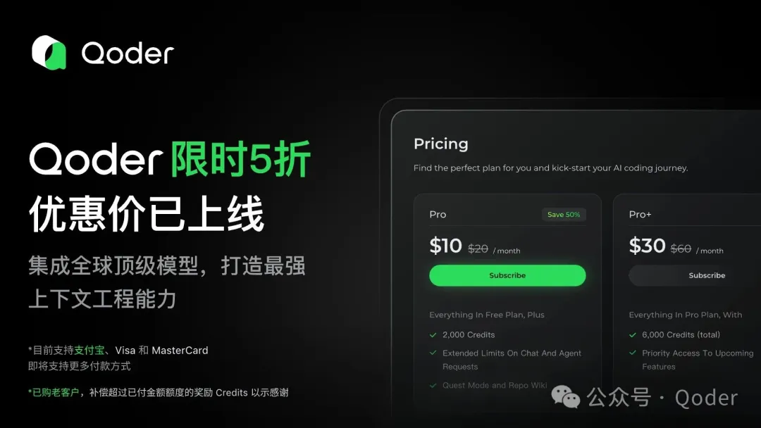 Qoder 限时 5 折优惠!支持支付宝付款,开发者效率神器半价解锁!