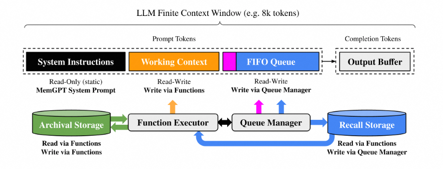 LETTA 的技术源自 MemGPT 的研究,目前是独立的一个商业化产品。LETTA 提出的方法借鉴了操作系统虚拟内存分页的思想,这种技术最初是为了让应用程序能够处理远超可用内存大小的数据集而开发的,它通过在主内存和磁盘之间进行数据分页来实现这一目标。LETTA 模拟虚拟内存的实现,将 Context 分为 Main Context 和 External Context 两部分,当 Main Context 空间不够的时候可以与 External Context 进行数据交换。