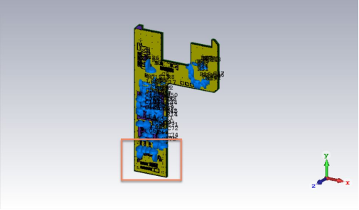 本期介绍介绍在 CST 里一个实用的 modeling 操作。切割 UV 平面,并选择局部进行仿真。如下图是一个手机 PCB 板子,当然我们可以选择在 EDA 界面截取部分进行仿真见FAQ 005:如何截取部分封装或者PCB进行仿真。其实在三维中,我们也可以用手动切割的方法进行截取模型。这种方式通用于各种模型。