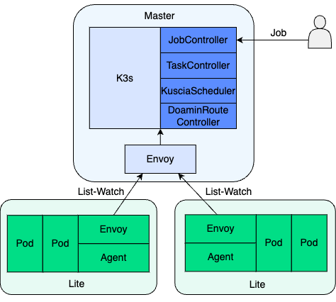 Kuscia 扩展了一组 K3s 控制器,用于处理 Kuscia 的自定义资源,这些控制器包括: