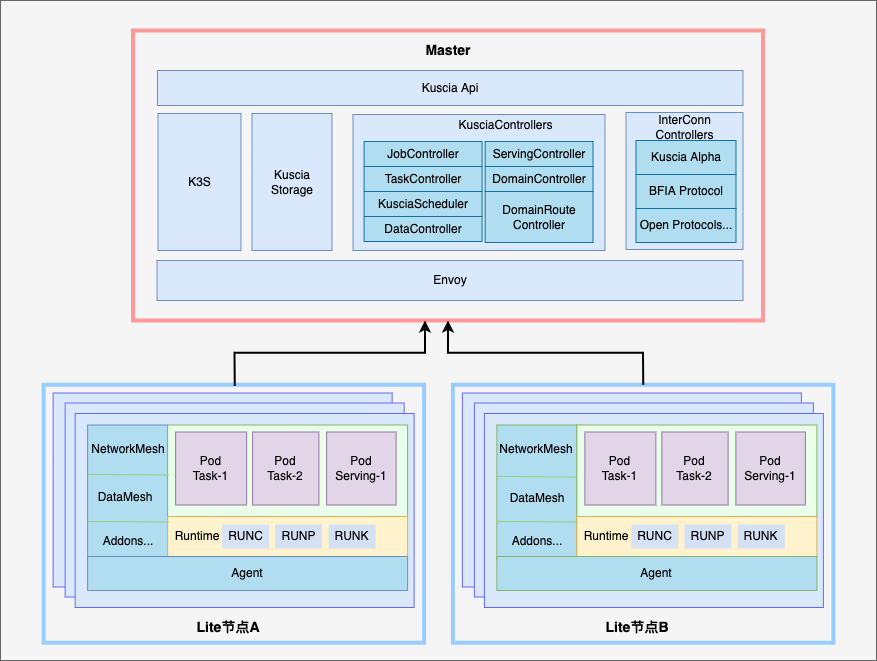 InterConn Controllers:互联互通控制器,负责不同控制平面下的节点互通,从而协同完成多方任务调度,支持多种互联互通协议。