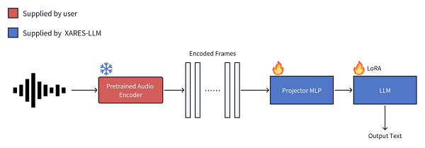 参赛者并不需要自己运行 XARES-LLM,而只需把音频编码器按照一个简单的接口说明和示例封装,通过邮件发送给主办方即可,大模型的训练和评估由主办方完成。当然,由于 XARES-LLM 是开源的,且只需 GTX4090 即可完成训练和评估,参赛者也可以自行使用该系统训练大模型、评估待提交的编码器的性能,并和主办方提供的基线系统比较。