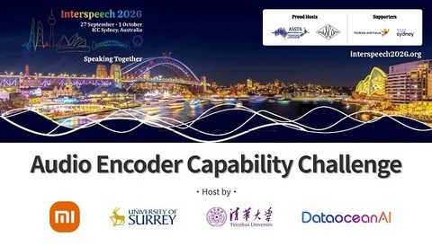 国际语音顶级会议 Interspeech 2026 将于 2026 年 9 月在澳大利亚悉尼举行。由小米、萨里大学、清华大学、海天瑞声联合发起的第二届 Audio Encoder Capability Challenge(AECC)音频编码器能力挑战赛将同步亮相 Interspeech 2026,目前已正式开放报名。