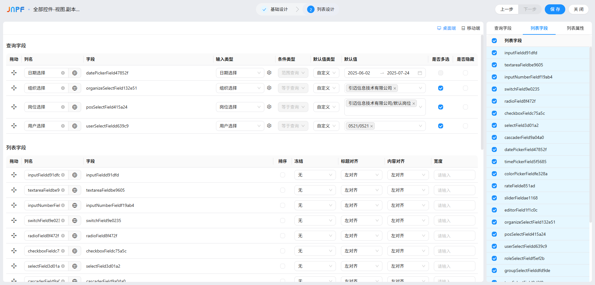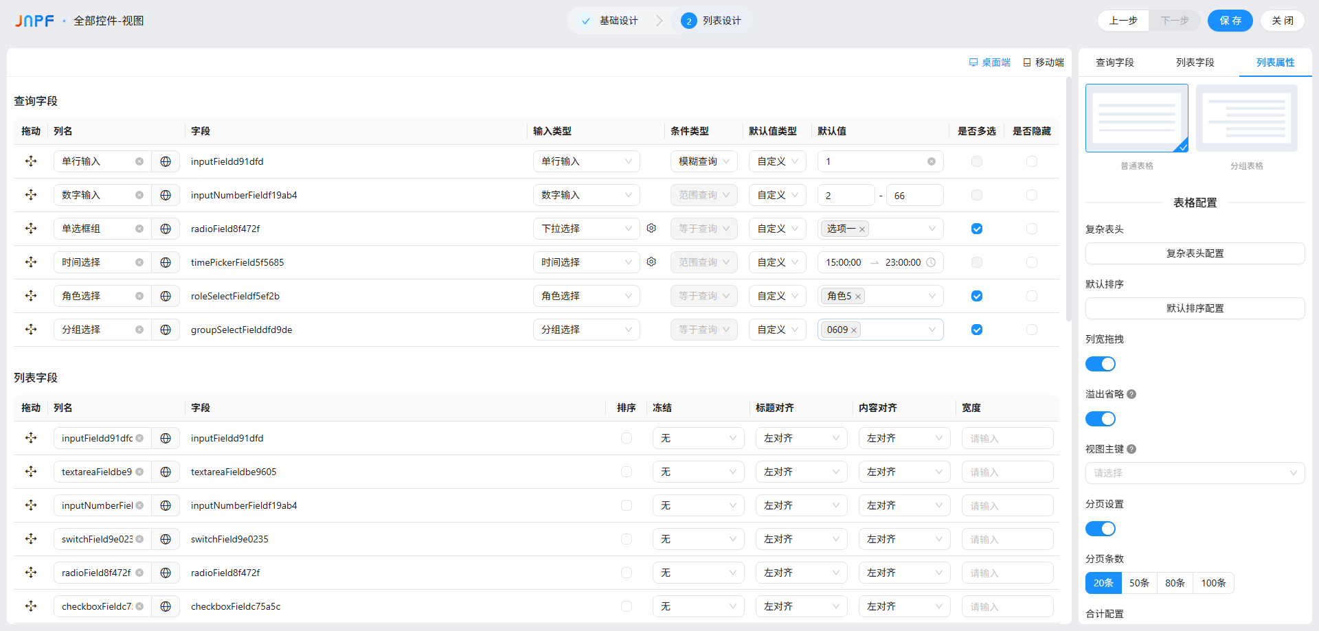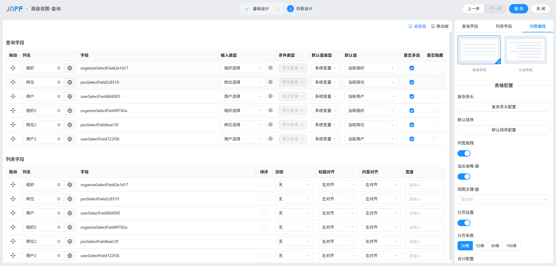 “查询字段” 是列表顶部的筛选条件(比如 “按姓名搜员工”“按日期搜订单”),作用是帮用户快速定位目标数据,它的来源只有 2 种,先分清再配置: