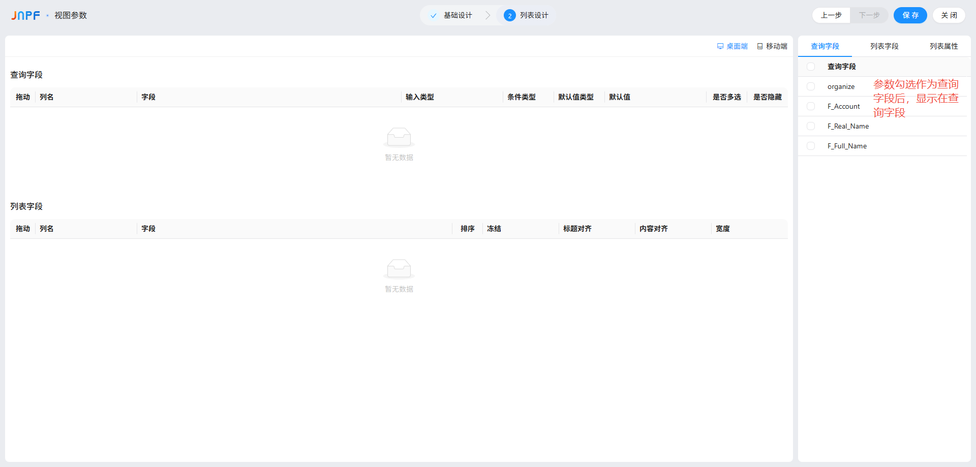 低代码查询字段的 PC 端和 APP 端有什么差异?