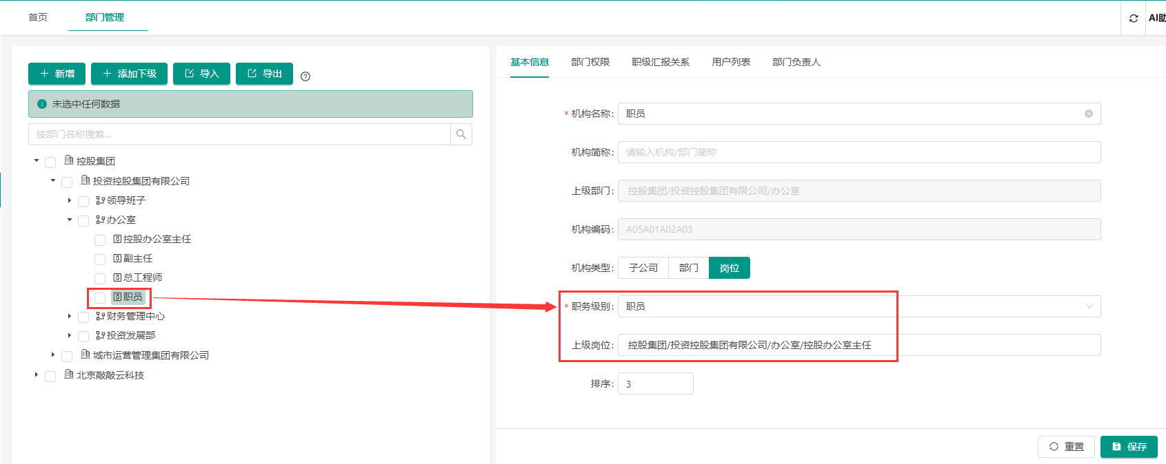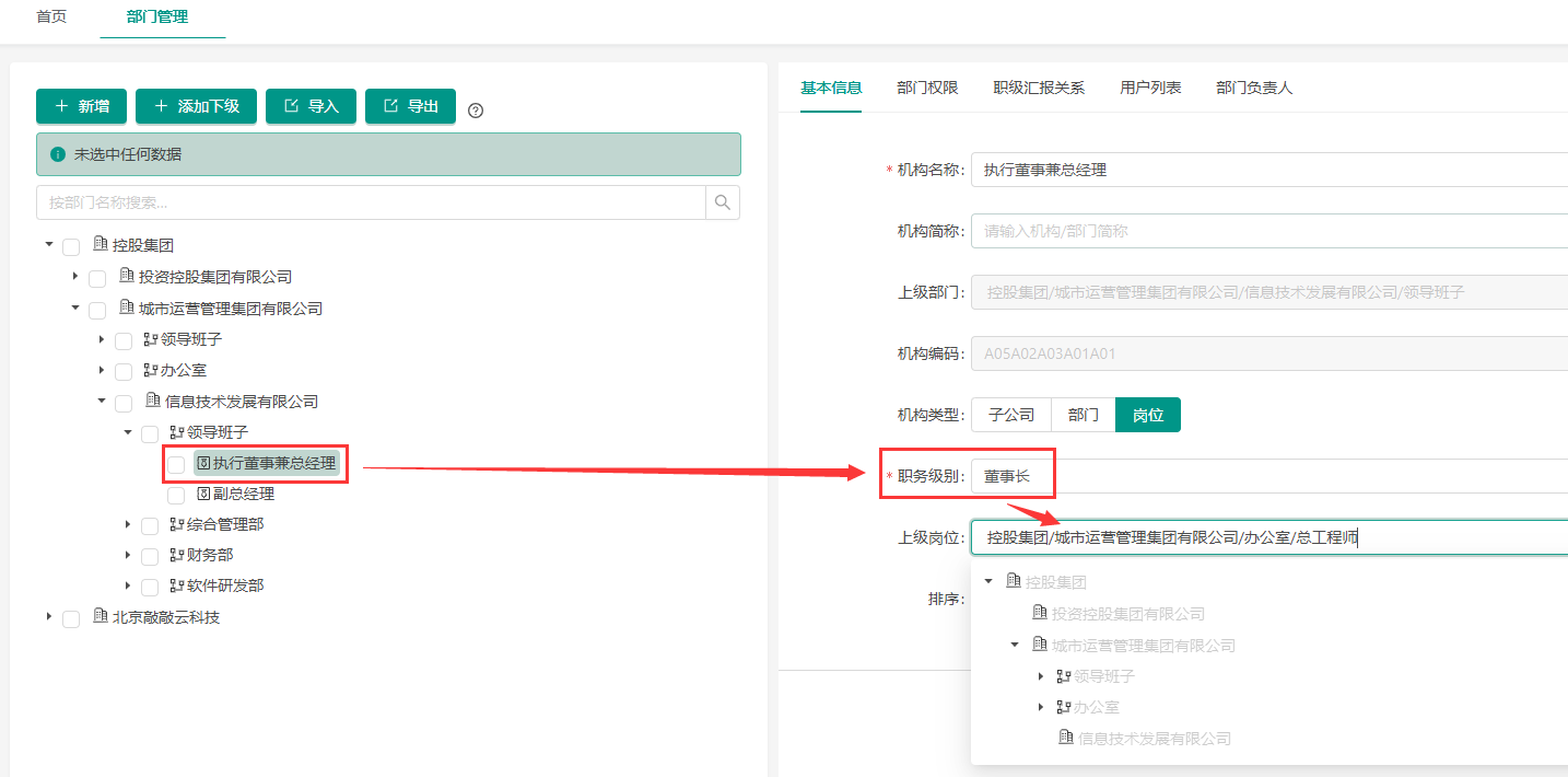 董事长岗位:仅可选择上级公司(子公司或总公司)各部门岗位为上级